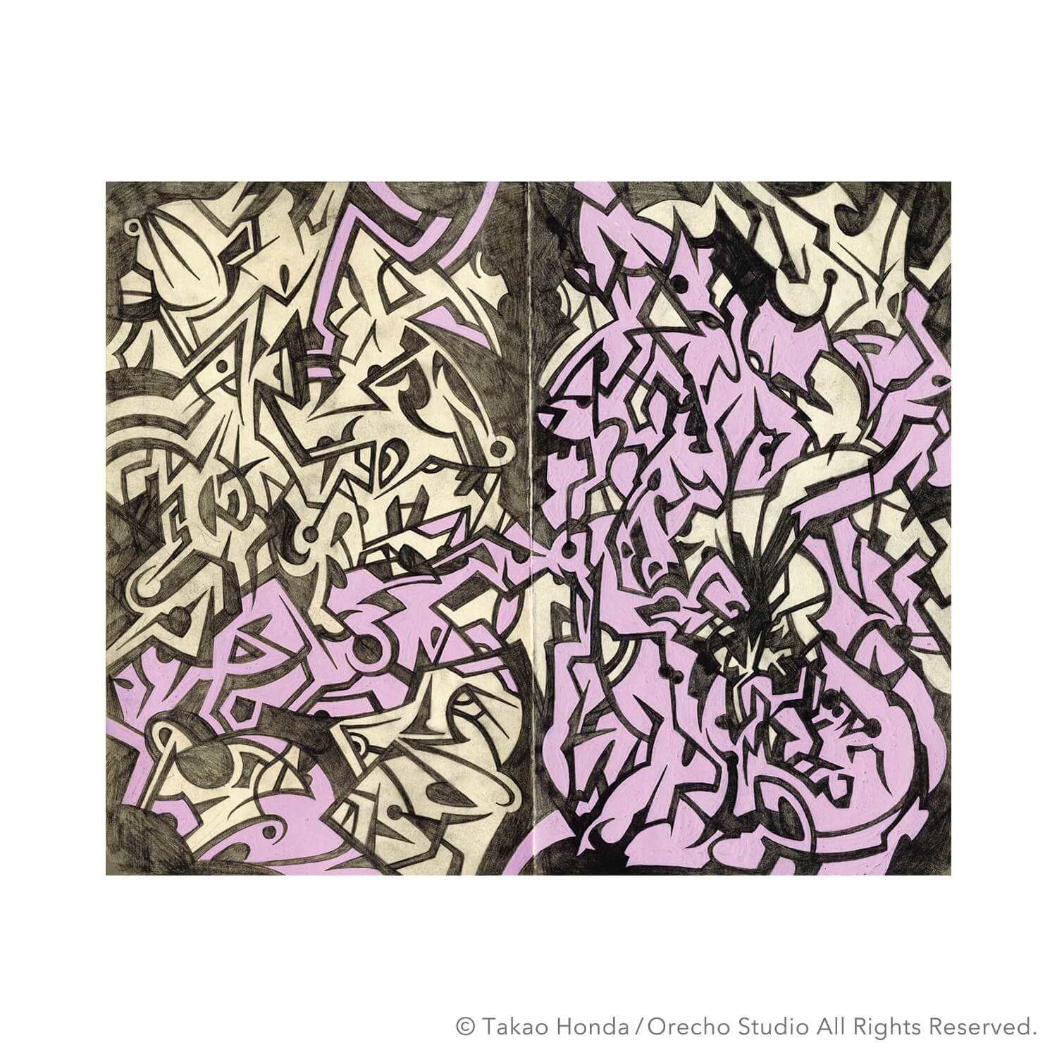 “オレの欲を喰ってくれ 2hライブドローインク”, 2011, Acrylic Gouache and Pencil on Paper, 28 × 34.5cm