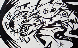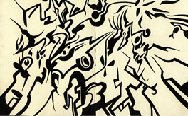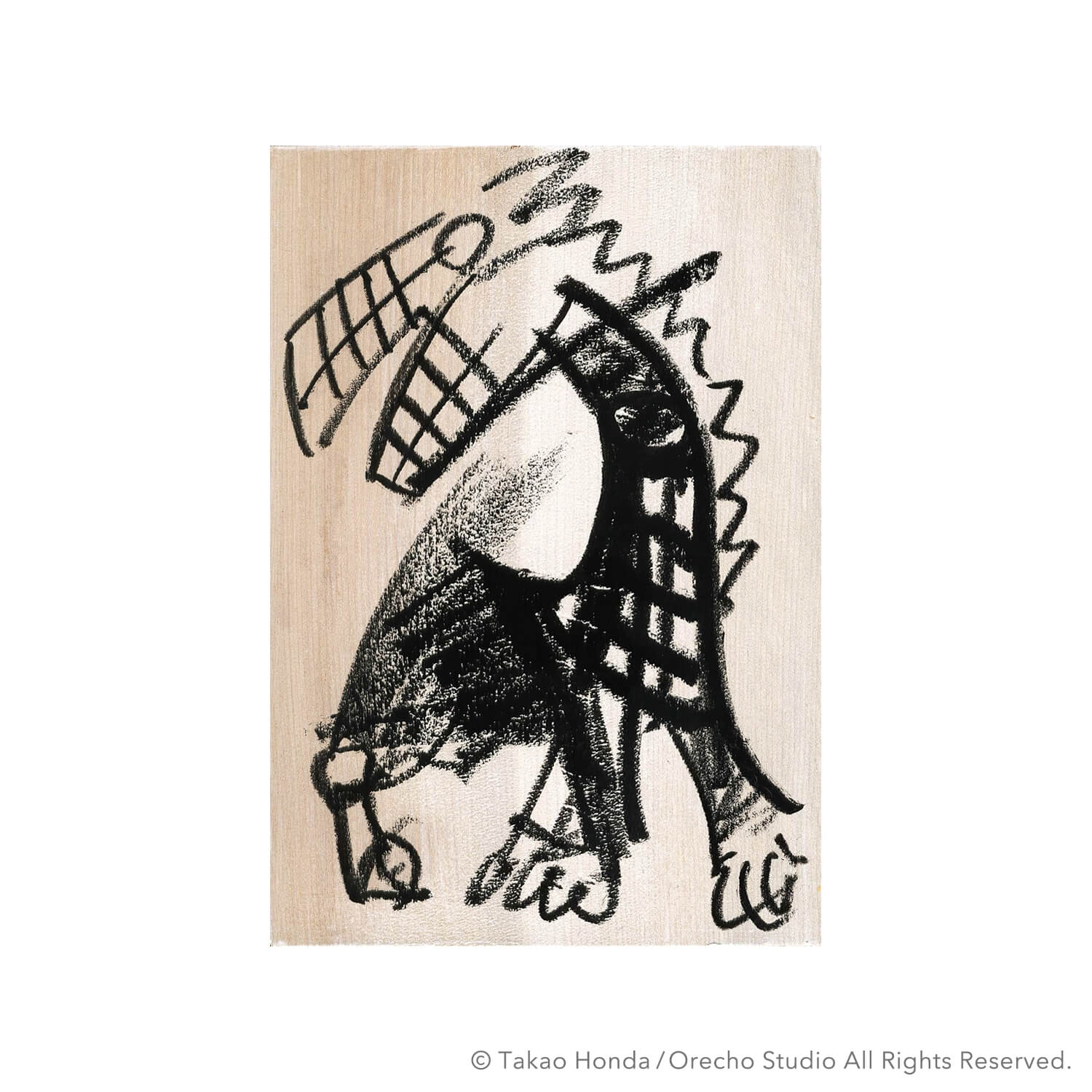 “Iron horse”, 2008, Paint Marker on Wooden boar, 16.0 × 11.0cm
