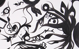 “Things that come out slowly”, 2008, Acrylic Gouache and Paint and Paint Marker on Canvas, 33.2 × 24.2cm