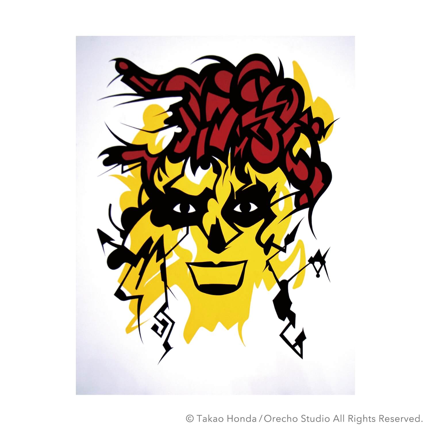 “Face 05 燃えろっ!な顔”, 2008, Acrylic Gouache on Paper, 36.5 × 31.5cm
