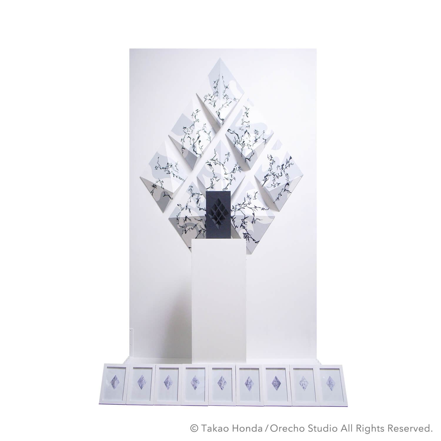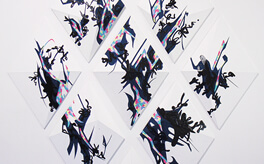“分離/合体/収縮/拡散”, 2009, Paint on Paper, 展示全体サイズ 211.8 × 116.7 × 75.0cm