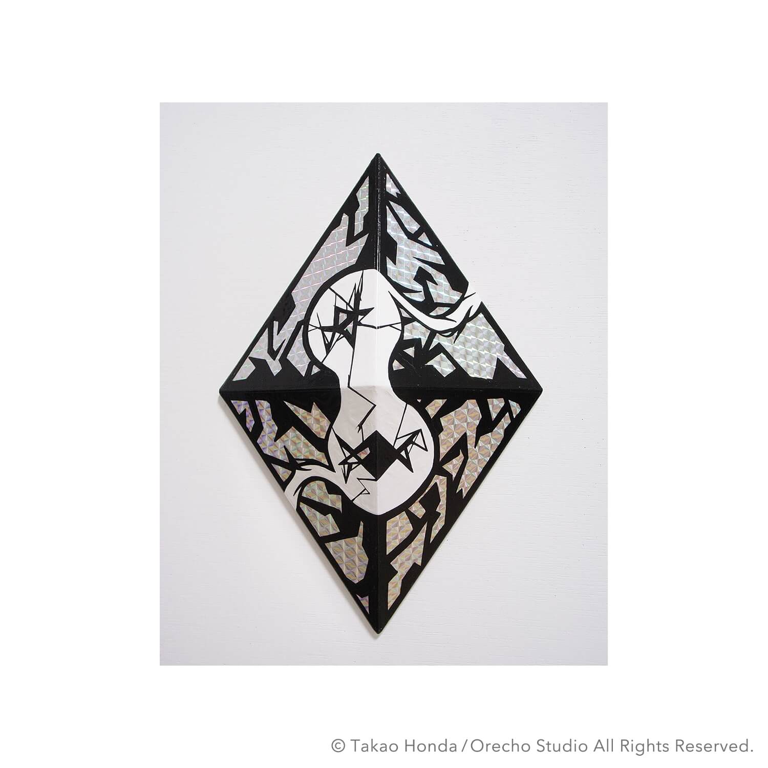 ”ゲットウ”, 2022, Modeling Paste and Medium on Holographic Foil Sheet, 17.0 × 20.0cm