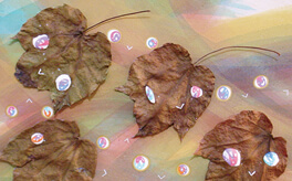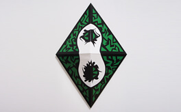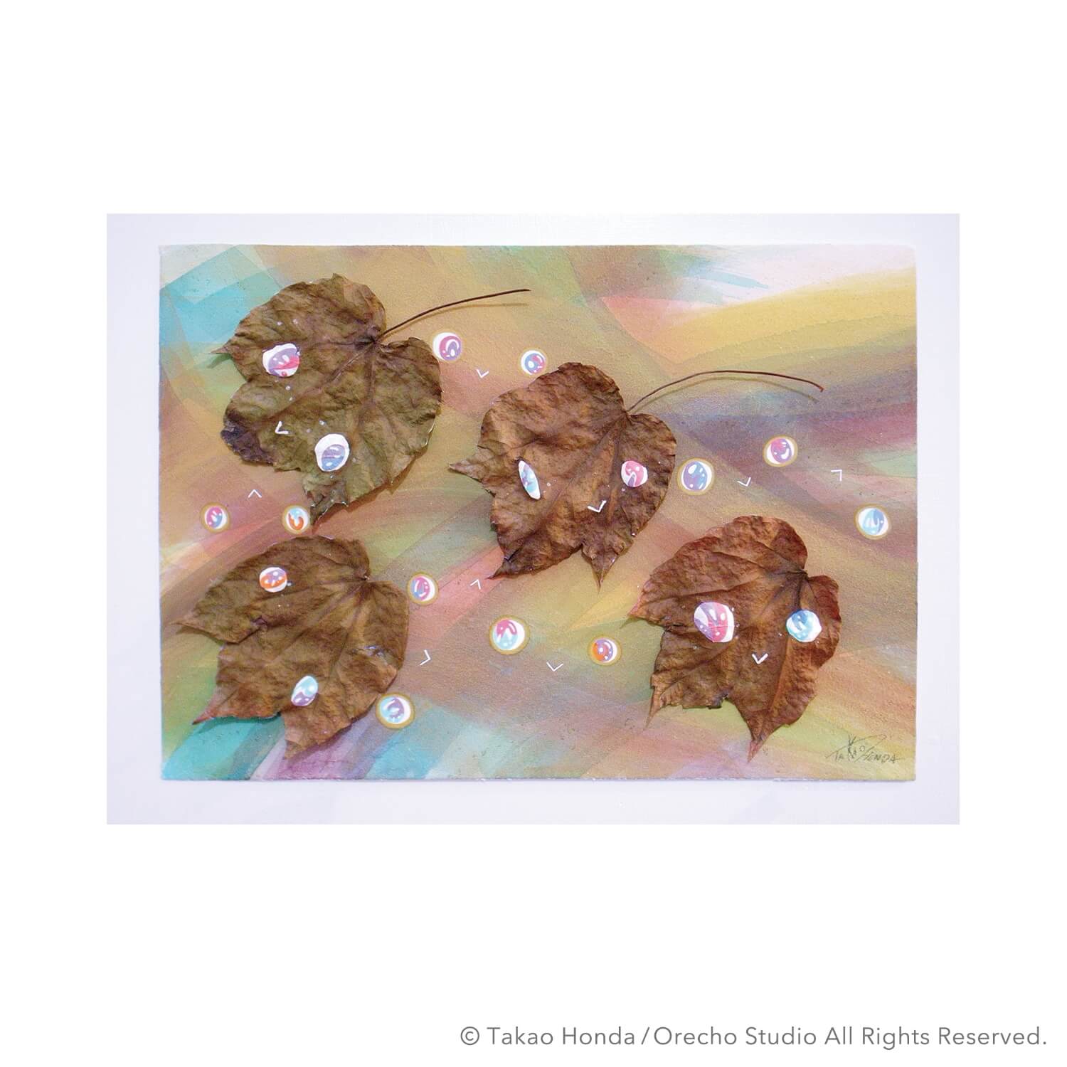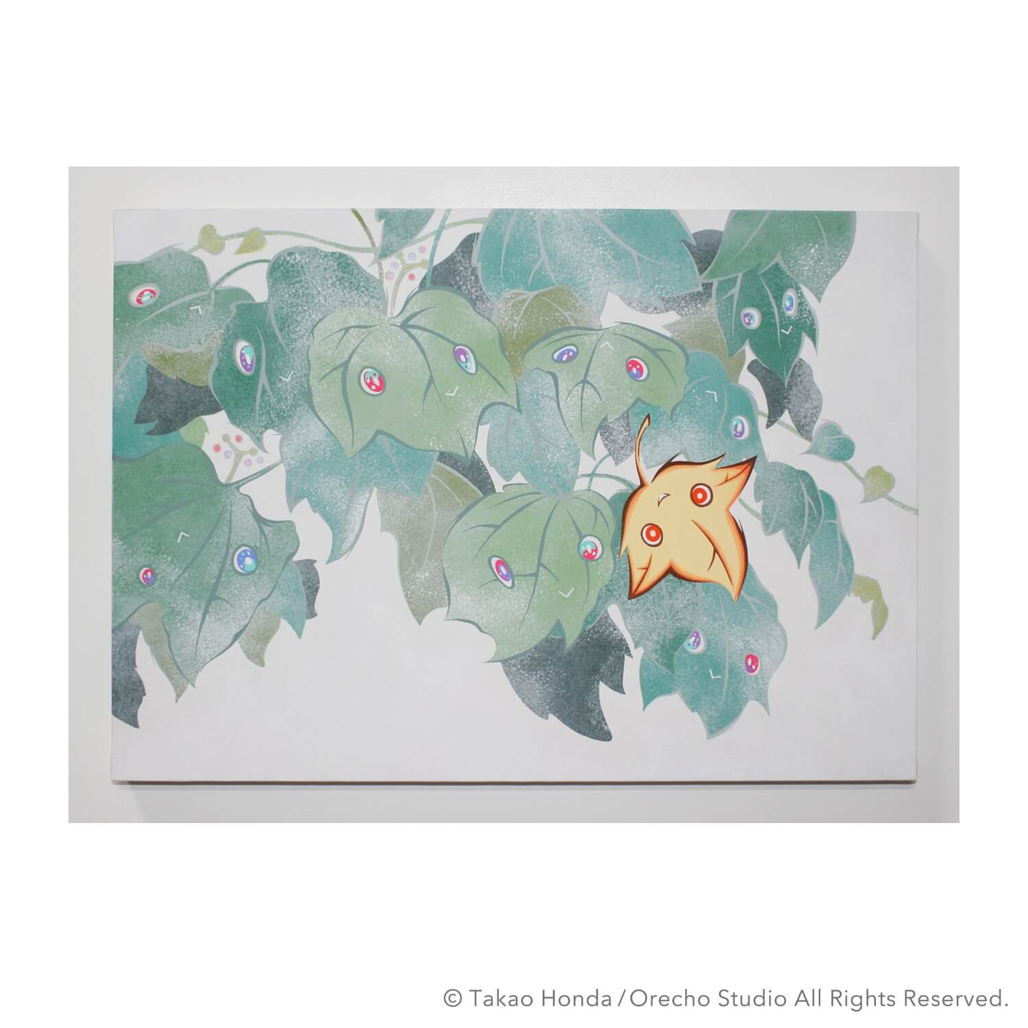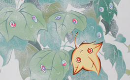 “はっぱの子が見ているぞ”, 2014, Acrylic Gouache on Plant and Paper, 21.0 × 29.7cm(A4size)