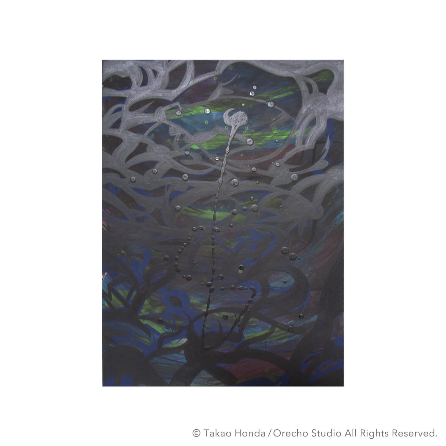 ”タマスダレ”, 2022, Modeling Paste and Medium on Holographic Foil Sheet, 18.0 × 21.0cm