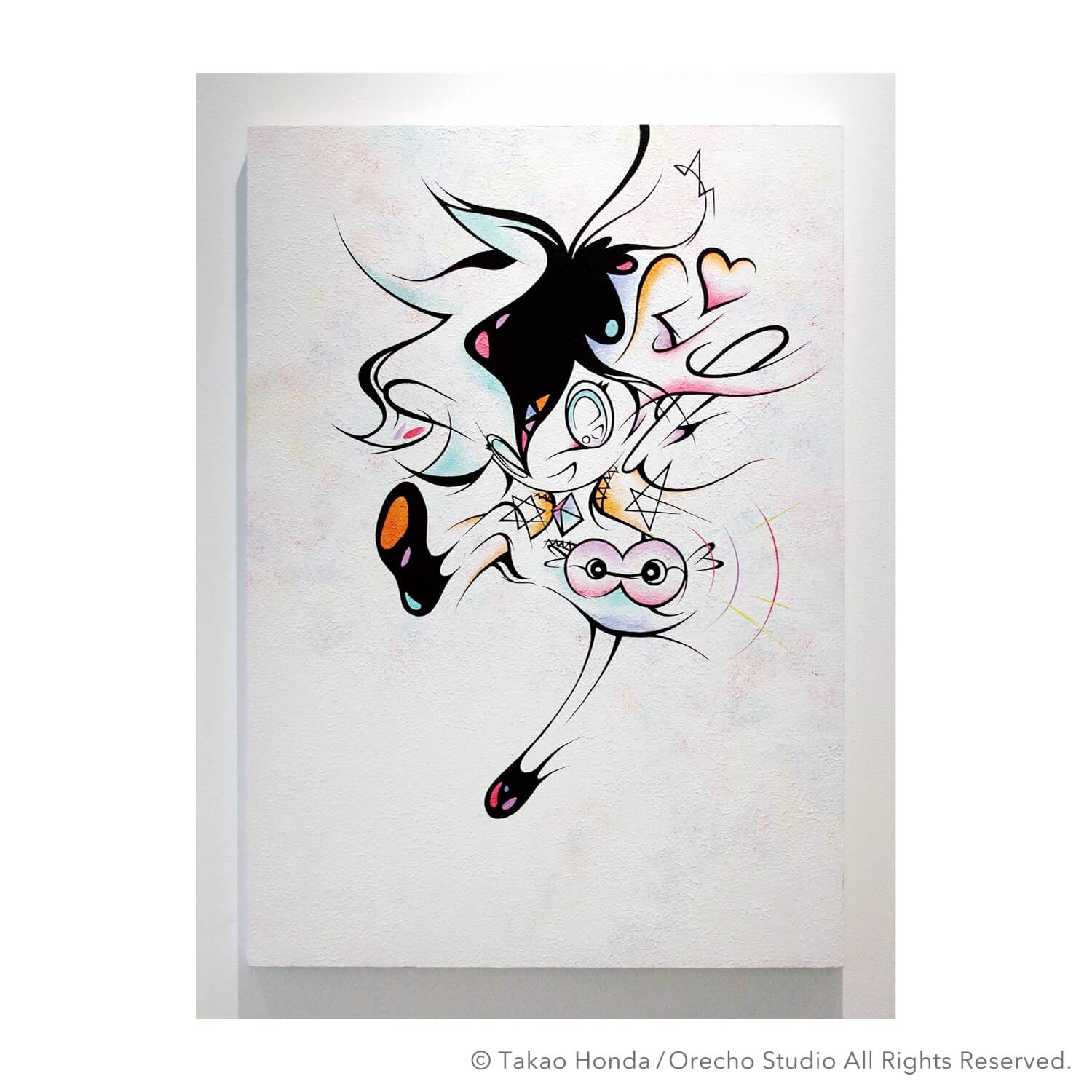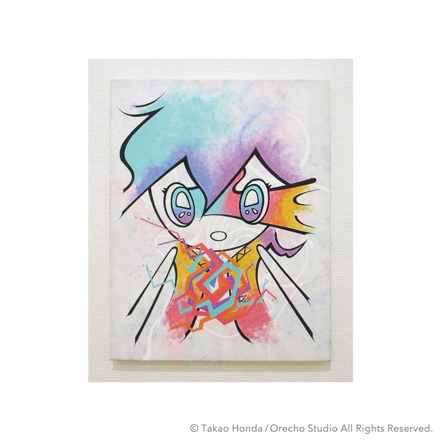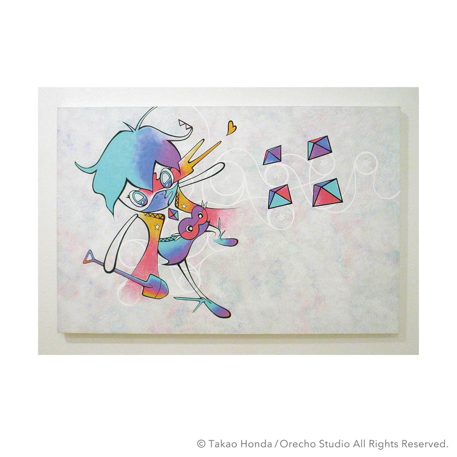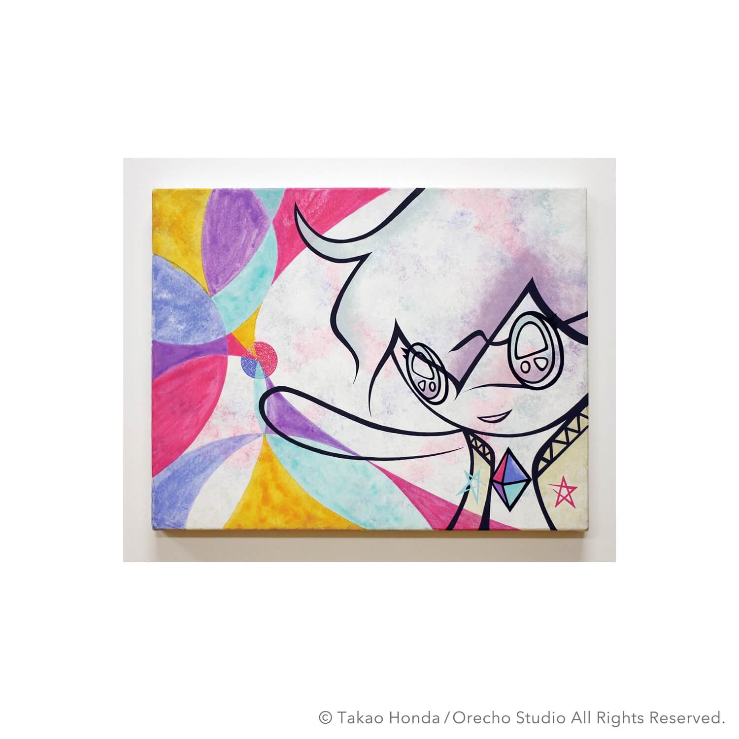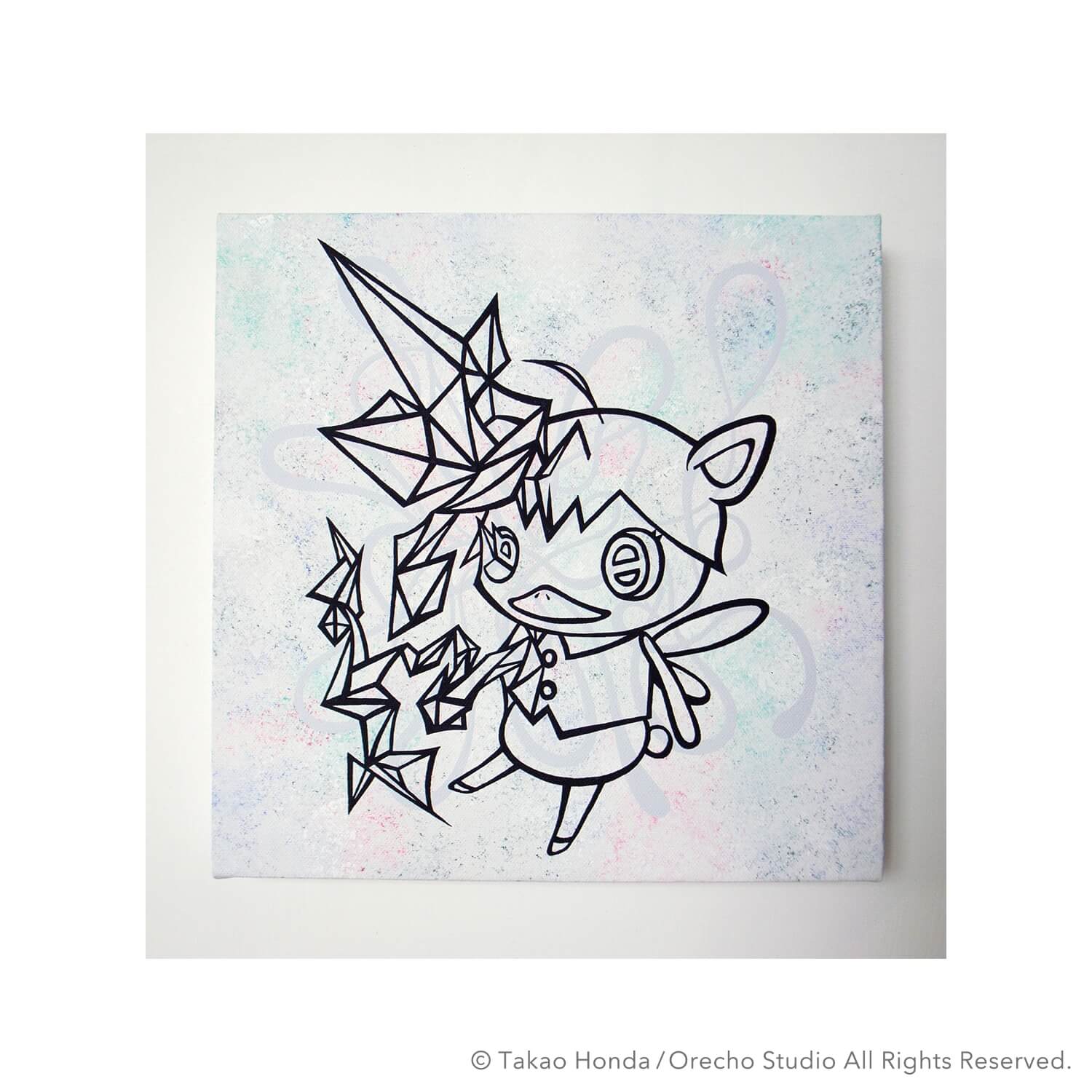“Jigen-kun (Mr dimension) at the cause space”, 2008, Acrylic Gouache on Canvas, 31.8 × 41.0cm