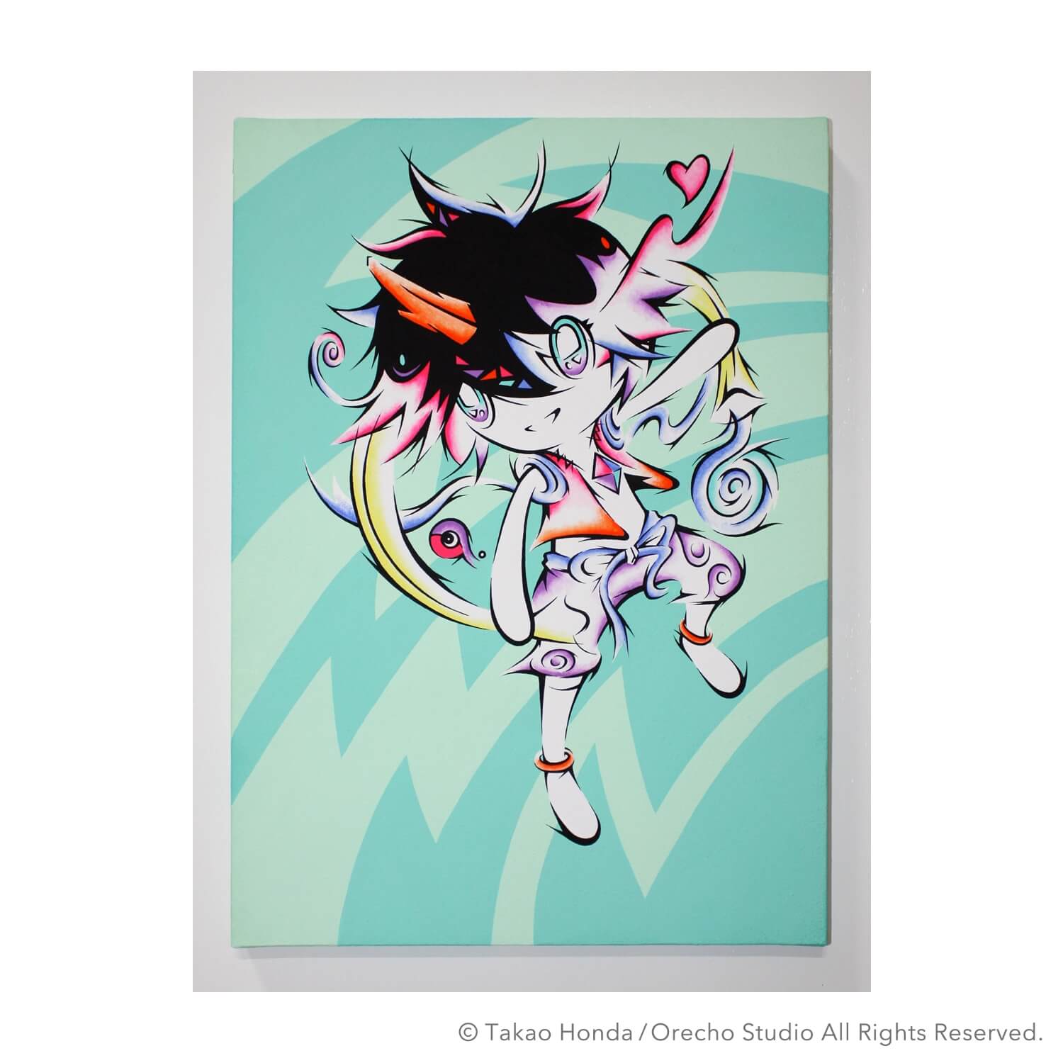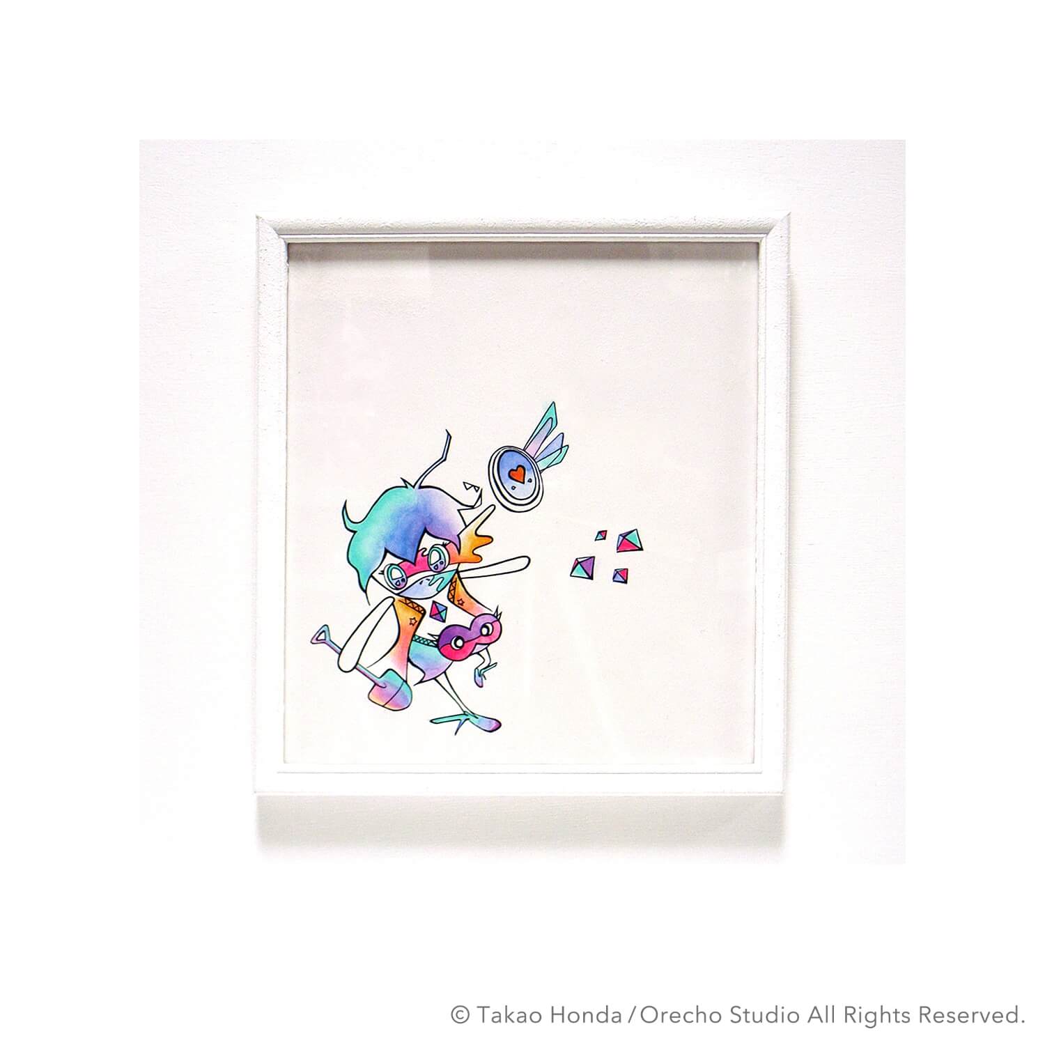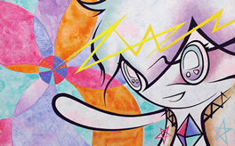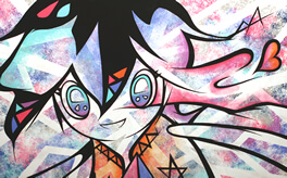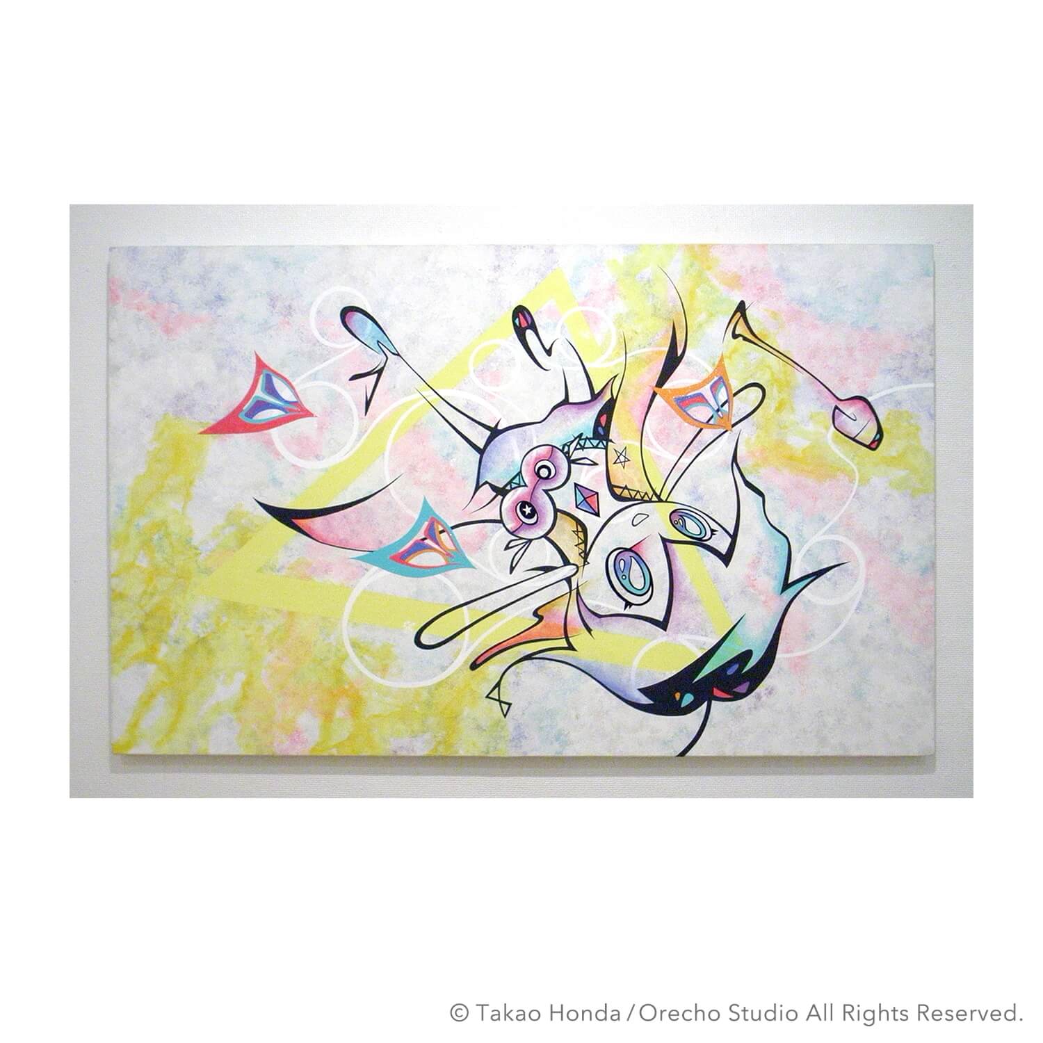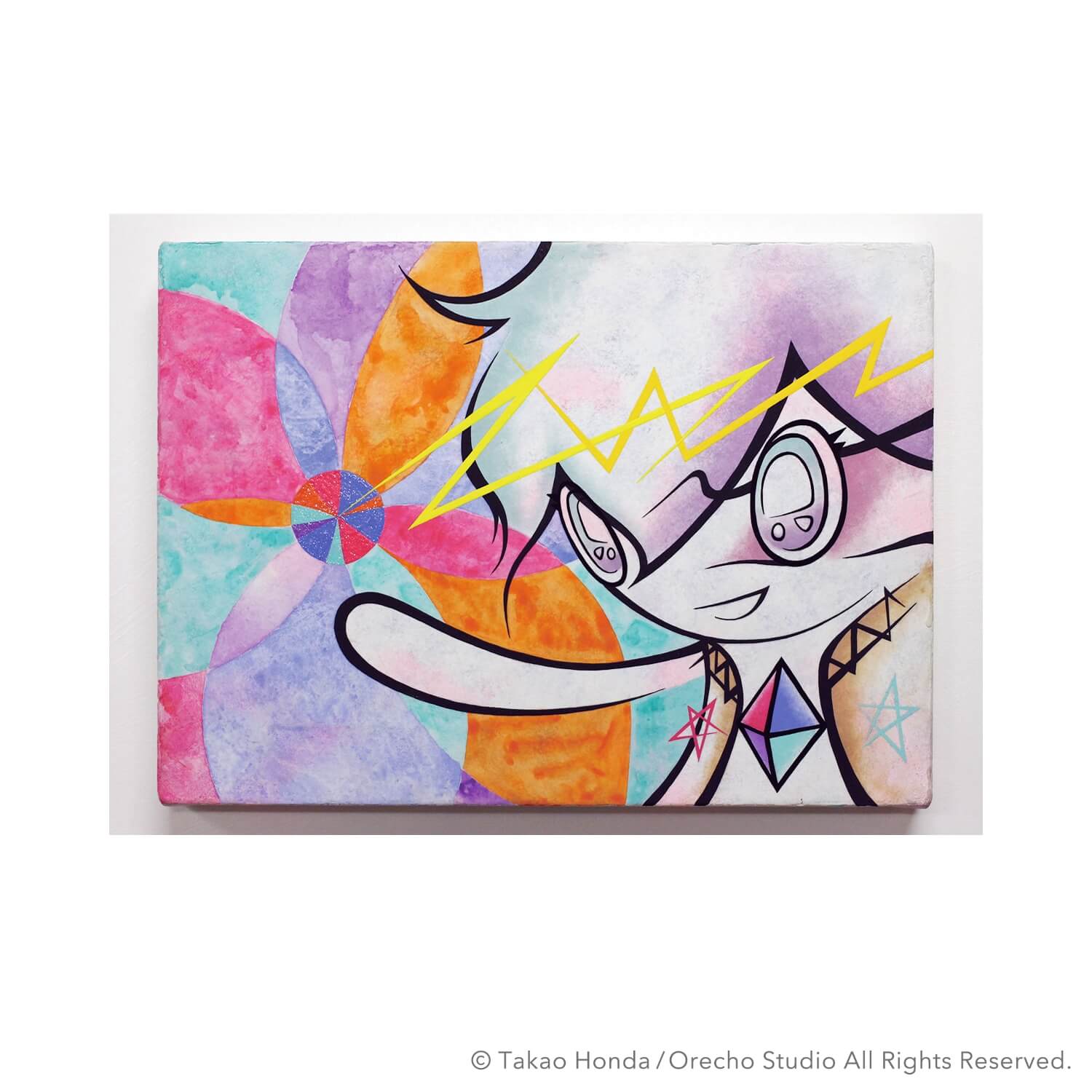 “Jigen-kun (Mr dimension) at the cause space”, 2008, Acrylic Gouache on Canvas, 31.8 × 41.0cm