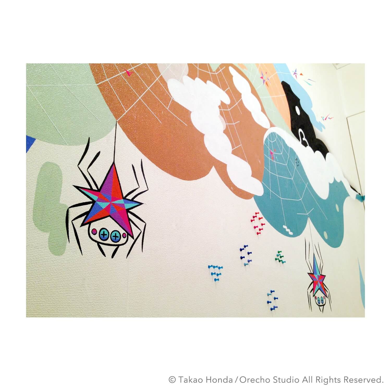 ”一瞬のチャンスを見逃すな!スタースパイダー”, 2013, Acrylic Gouache and Line tape on Wall