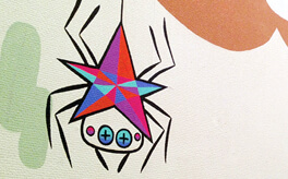 ”Don't miss a moment's chance! Star spider”, 2013, Acrylic Gouache and Line tape on Wall
