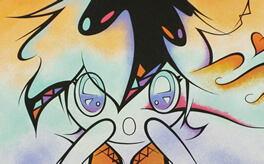 “Face 10 隠しきれない”, 2008, Acrylic Gouache on Illustration board, 42.0 × 29.7cm(A3size)